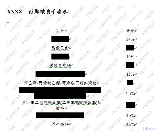 2019年1月中旬,杭州柘大飞秒检测技术有限公司迎来了江苏某公司负责人,该客户因为其产品在市场上没有太大竞争力度,找到我们飞秒检测,委托我公司为其提供的丙烯酸自干清漆样品进行全成分分析,并给出相应含量,帮助其还原出市场有竞争力的产品。